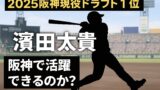 右のガッチリ体型で足もあって二遊間も守れるって、阪神ファンが大好物の“ロマン枠ドラ1”って感じやなあ。